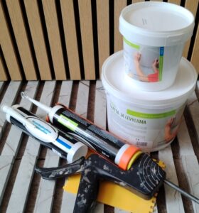 Liimaus on yleisin ja varmin tapa asentaa Konto‑akustiikkalevyt. Liima levitetään joko 3–4 mm liimakammalla tai tuubiliimalla (330 ml).